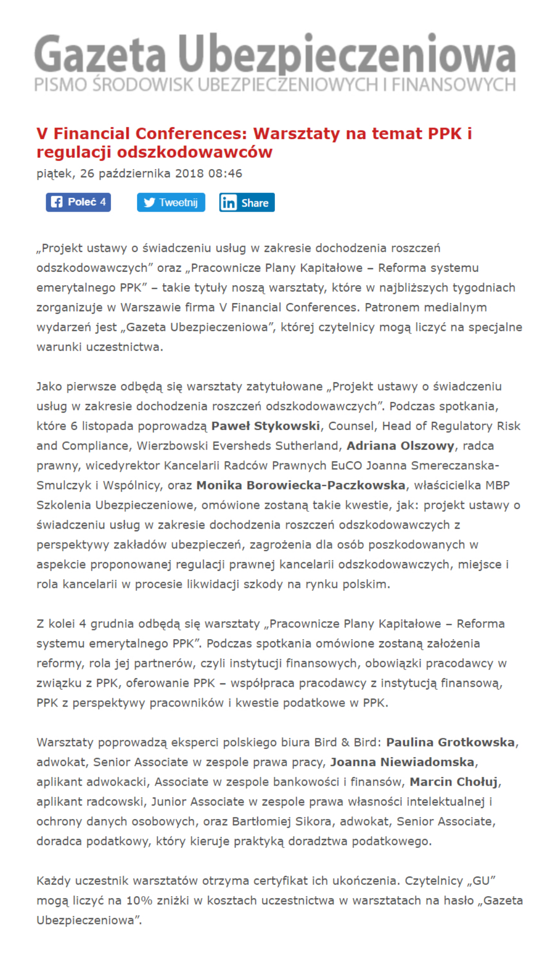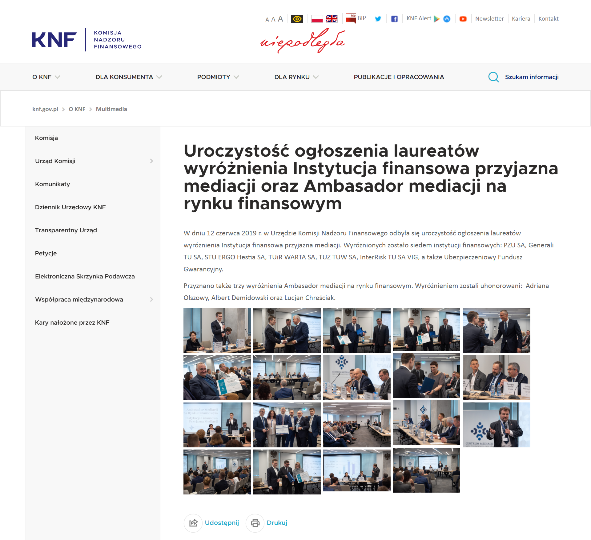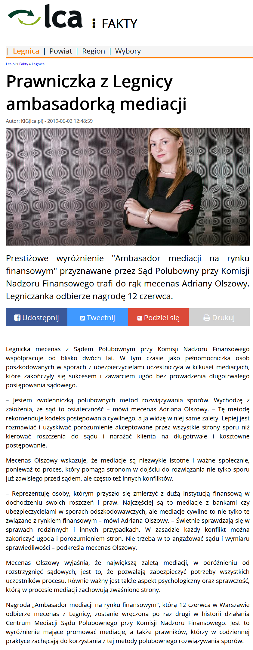 Jako zwolenniczka polubownych metod rozwiązywania sporów jako pełnomocnik uczestniczyłam w kilkuset mediacjach w Centrum Mediacji Sądu Polubownego przy KNF w Warszawie.