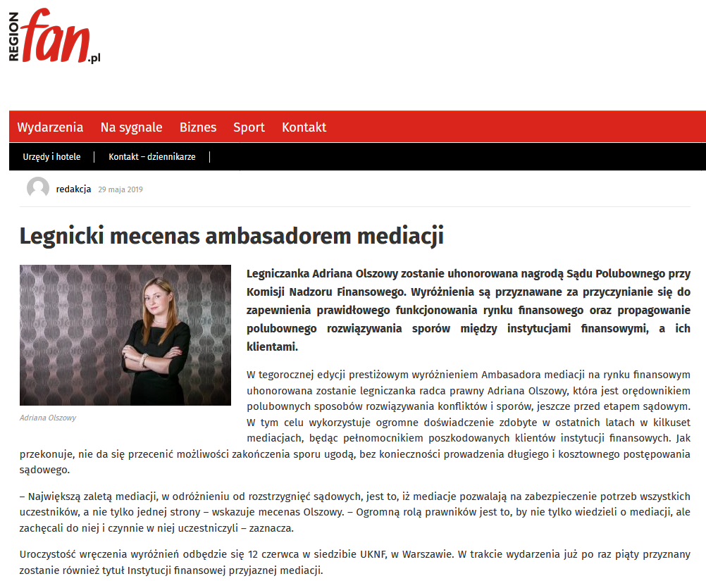 - reprezentowanie w mediacjach pozasądowych ( zwłaszcza w Centrum Mediacji Sądu Polubownego przy Komisji Nadzowy Finansowego)
